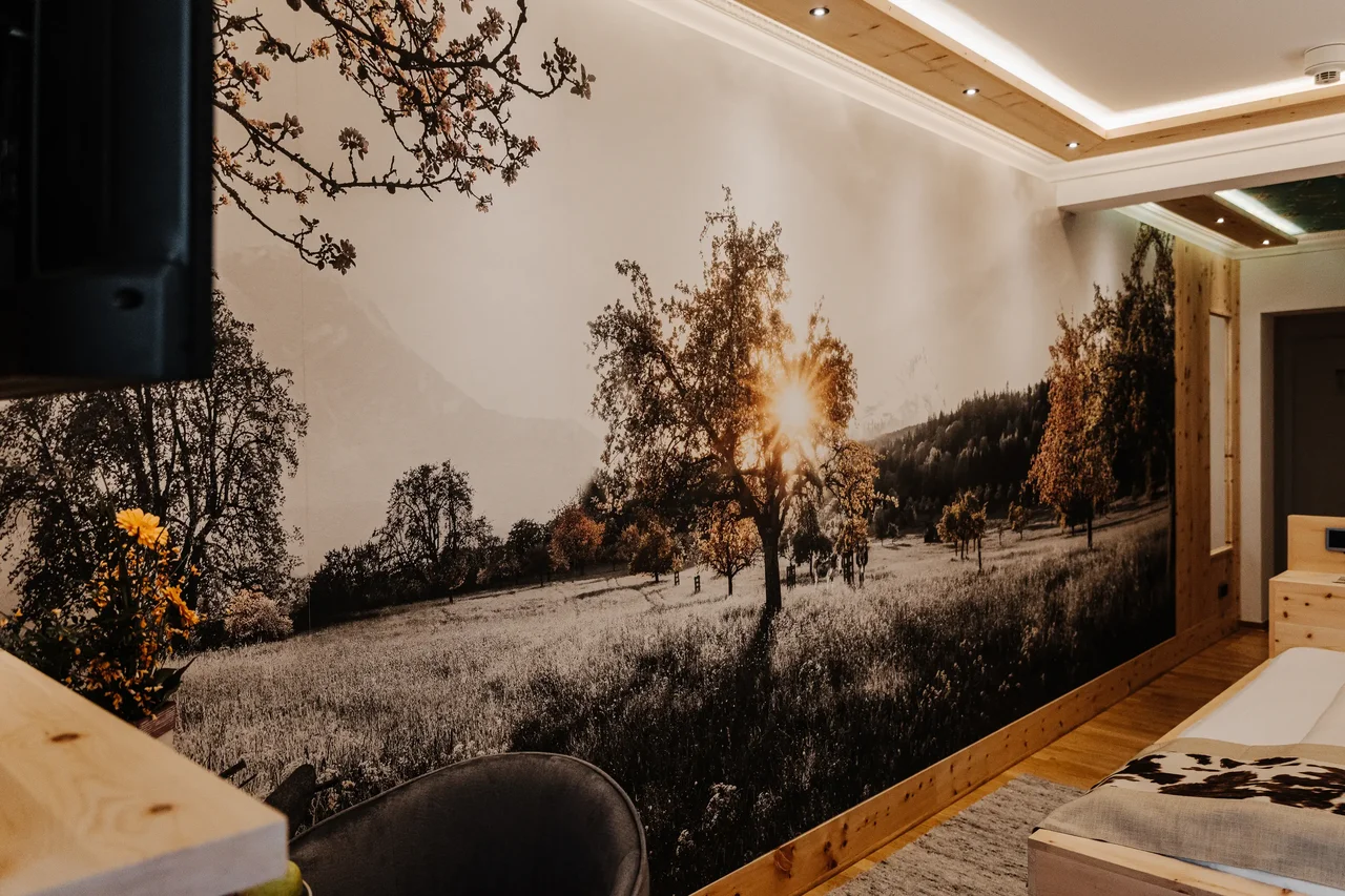 Die Zimmer im Gut Edermann sind je nach Kategorie und Ausrichtung unterschiedlich gelegen und bieten – abhängig vom Zimmertyp – Panoramablick, Bergblick oder eine ruhige Nordlage.