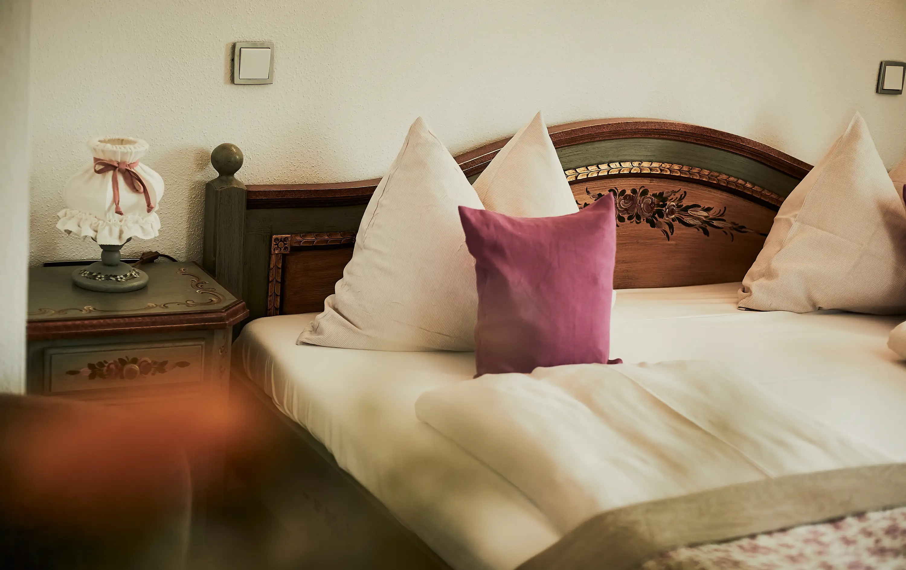 Die Bettwäsche im Gut Edermann ist mit Gänsefedern gefüllt. Auf Wunsch ist Allergikerbettwäsche verfügbar.