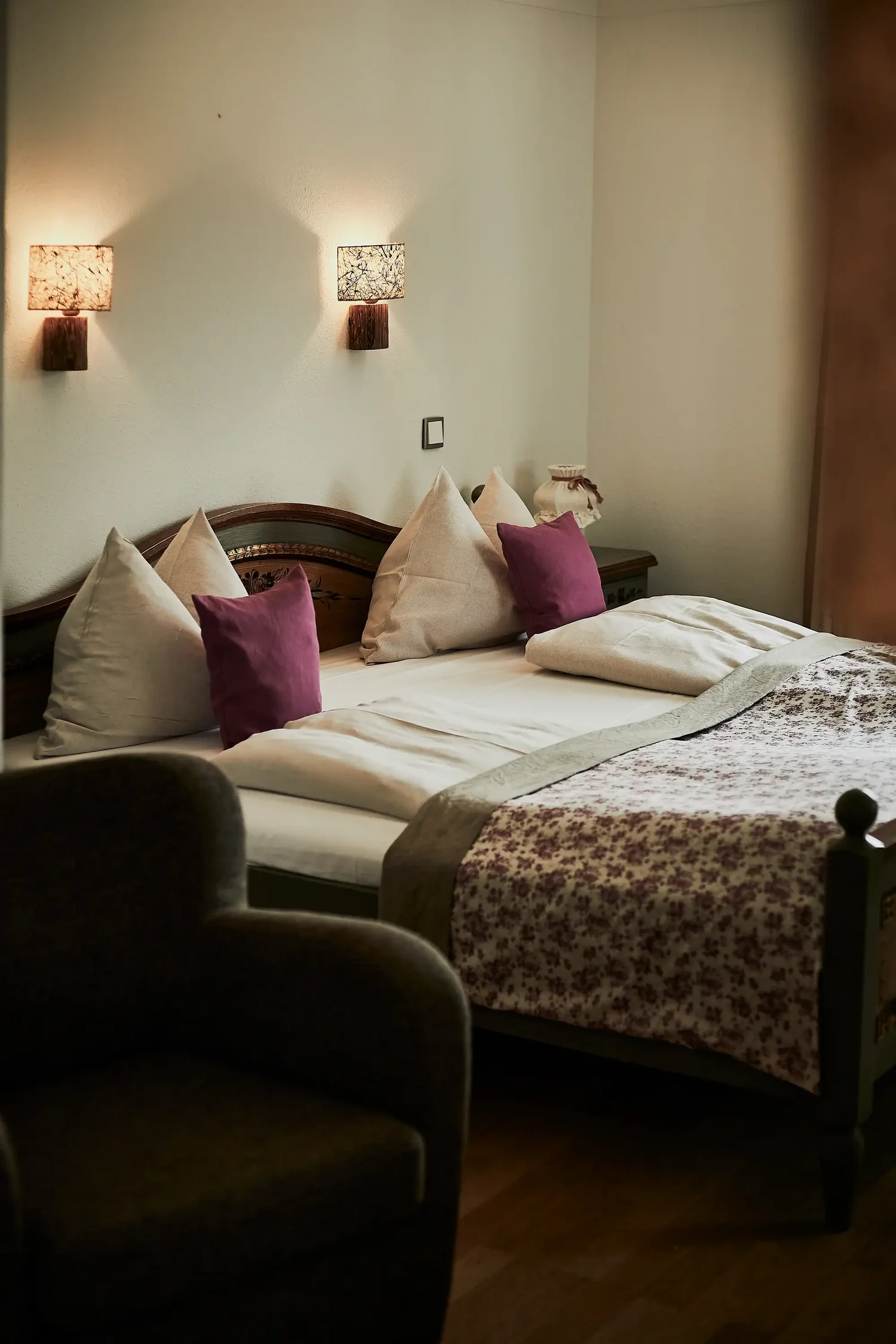 Die Zimmer im Gut Edermann sind je nach Kategorie und Ausrichtung unterschiedlich gelegen und bieten – abhängig vom Zimmertyp – Panoramablick, Bergblick oder eine ruhige Nordlage.