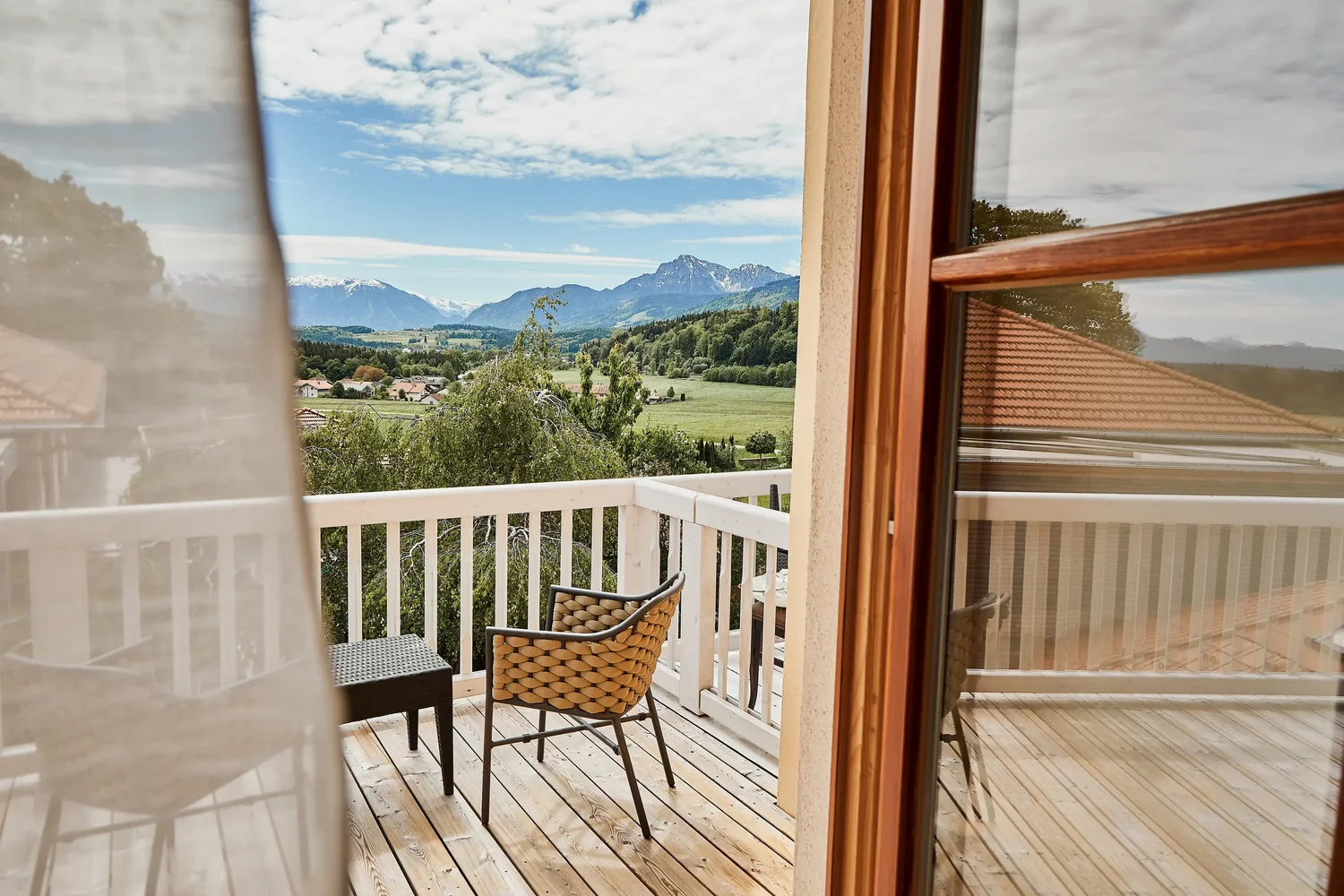 Die Zimmer im Gut Edermann sind je nach Kategorie und Ausrichtung unterschiedlich gelegen und bieten – abhängig vom Zimmertyp – Panoramablick, Bergblick oder eine ruhige Nordlage.